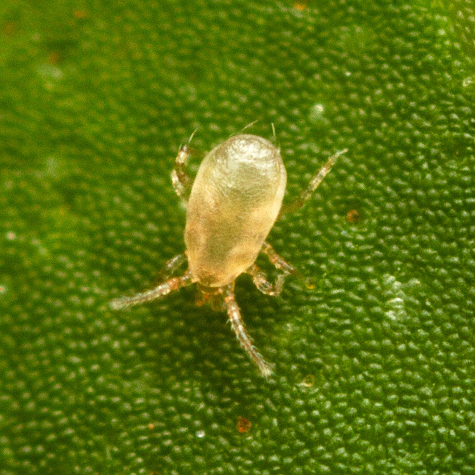 Amblyseius swirskii is a beneficial predatory mite that feeds on common plant pests.